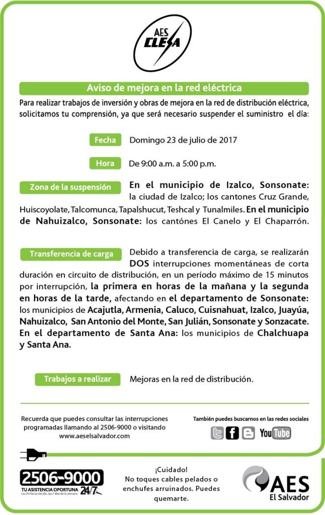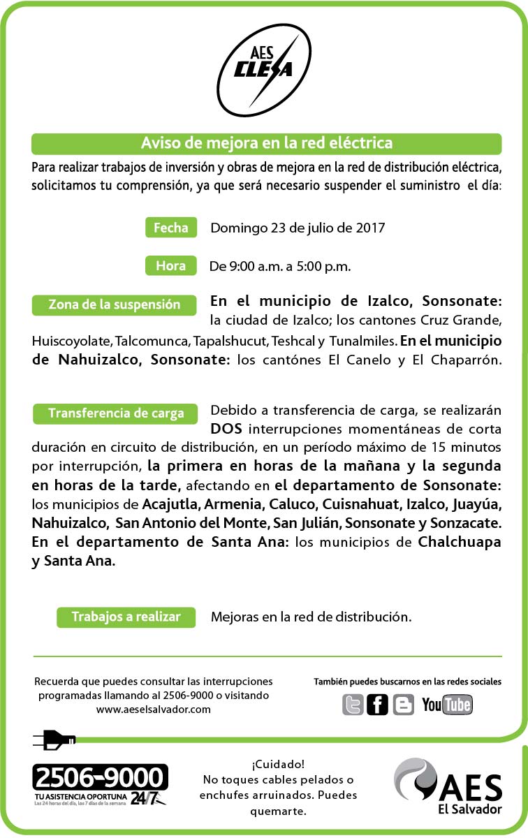 CLESA, domingo 23 de julio 20 julio, 2017 aeselsalvador Trabajos de mejora en la red de distribución de nuestra empresa CLESA. Comparte: Compartir en X (Se abre en una ventana nueva) X Comparte en Facebook (Se abre en una ventana nueva) Facebook Me gusta Cargando... CLESA, domingo 23 de julio