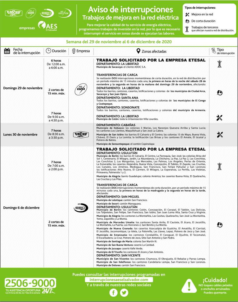 Interrupciones programadas del 29 de noviembre al 6 de diciembre 27 noviembre, 202026 noviembre, 2020 aeselsalvador descargue-interrupciones-programadas-del-29-de-noviembre-al-6-de-diciembreDescarga Comparte: Compartir en X (Se abre en una ventana nueva) X Comparte en Facebook (Se abre en una ventana nueva) Facebook Me gusta Cargando... Interrupciones programadas del 29 de noviembre al 6 de diciembre