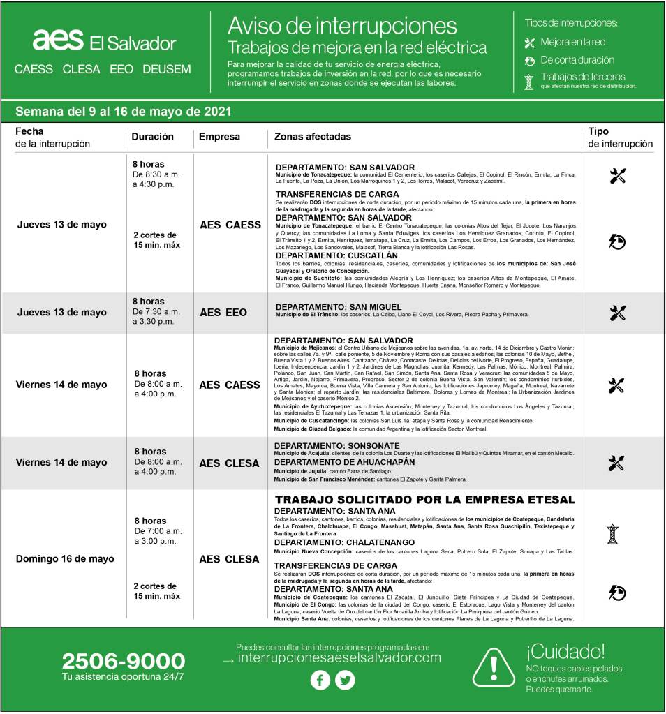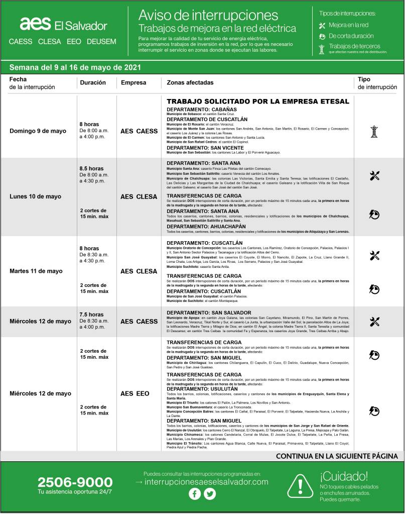 Descargue Interrupciones programadas del 9 al 16 de mayo 7 mayo, 20217 mayo, 2021 aeselsalvador descargue-interupciones-programadas-del-9-al-16-de-mayoDescarga descargue-interrupciones-programadas-del-9-al-16-de-mayo-2Descarga Comparte: Compartir en X (Se abre en una ventana nueva) X Comparte en Facebook (Se abre en una ventana nueva) Facebook Me gusta Cargando... Descargue Interrupciones programadas del 9 al 16 de mayo