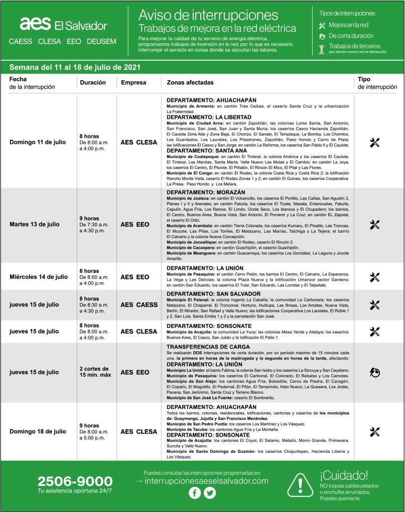 Interrupciones programadas del 11 al 18 de julio 9 julio, 20219 julio, 2021 aeselsalvador descargue-interrupciones-programadas-del-11-al-18-de-julioDescarga Comparte: Compartir en X (Se abre en una ventana nueva) X Comparte en Facebook (Se abre en una ventana nueva) Facebook Me gusta Cargando... Interrupciones programadas del 11 al 18 de julio