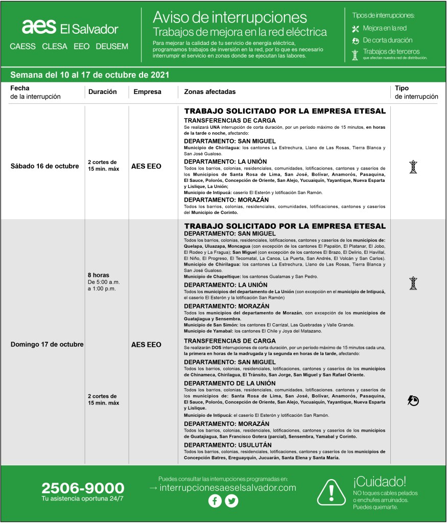 Interrupciones programadas del 10 al 17 de octubre 8 octubre, 20218 octubre, 2021 aeselsalvador descargar-interrupciones-programadas-del-10-al-17-de-octubre1Descarga descargar-interrupciones-programadas-del-10-al-17-de-octubre2Descarga Comparte: Compartir en X (Se abre en una ventana nueva) X Comparte en Facebook (Se abre en una ventana nueva) Facebook Me gusta Cargando... Interrupciones programadas del 10 al 17 de octubre