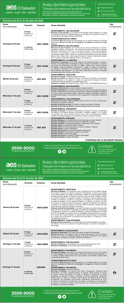 Interrupciones programadas del 24 al 31 de julio 22 julio, 202221 julio, 2022 aeselsalvadorCAESS, CLESA, EEO descargue-interrupciones-programadas-del-24-al-31-de-julioDescarga Comparte: Compartir en X (Se abre en una ventana nueva) X Comparte en Facebook (Se abre en una ventana nueva) Facebook Me gusta Cargando... Interrupciones programadas del 24 al 31 de julio