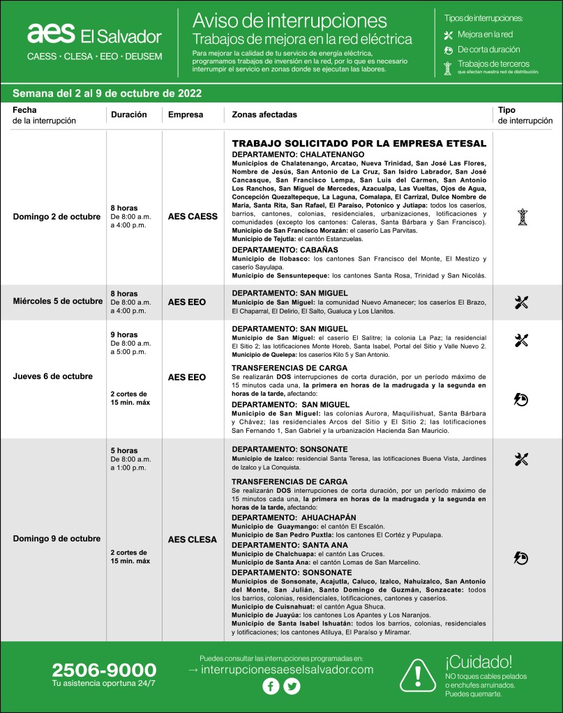 Interrupciones programadas del 2 al 9 de octubre 30 septiembre, 202229 septiembre, 2022 aeselsalvadorCAESS, EEO descargue-interrupciones-programadas-del-2-al-9-de-octubre-1Descarga Comparte: Compartir en X (Se abre en una ventana nueva) X Comparte en Facebook (Se abre en una ventana nueva) Facebook Me gusta Cargando... Interrupciones programadas del 2 al 9 de octubre