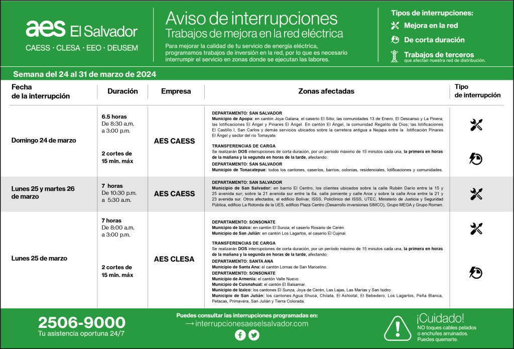 Interrupciones programadas del 24 al 31 de marzo 22 marzo, 202421 marzo, 2024 aeselsalvadorCAESS, CLESA, DEUSEM, EEO descargue_interrupciones_programadas_del_24_al_31_de_marzoDescarga Comparte: Haz clic para compartir en X (Se abre en una ventana nueva) X Haz clic para compartir en Facebook (Se abre en una ventana nueva) Facebook Me gusta Cargando... Interrupciones programadas del 24 al 31 de marzo