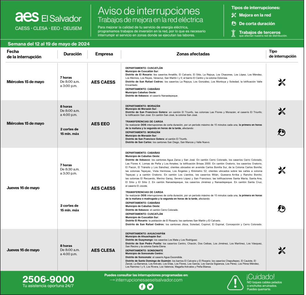 Interrupciones programadas del 12 al 19 de mayo 10 mayo, 20249 mayo, 2024 aeselsalvadorCAESS, CLESA, DEUSEM, EEO descargue_interrupciones_programadas_del_12_al_19_de_mayoDescarga Comparte: Haz clic para compartir en X (Se abre en una ventana nueva) X Haz clic para compartir en Facebook (Se abre en una ventana nueva) Facebook Me gusta Cargando... Interrupciones programadas del 12 al 19 de mayo