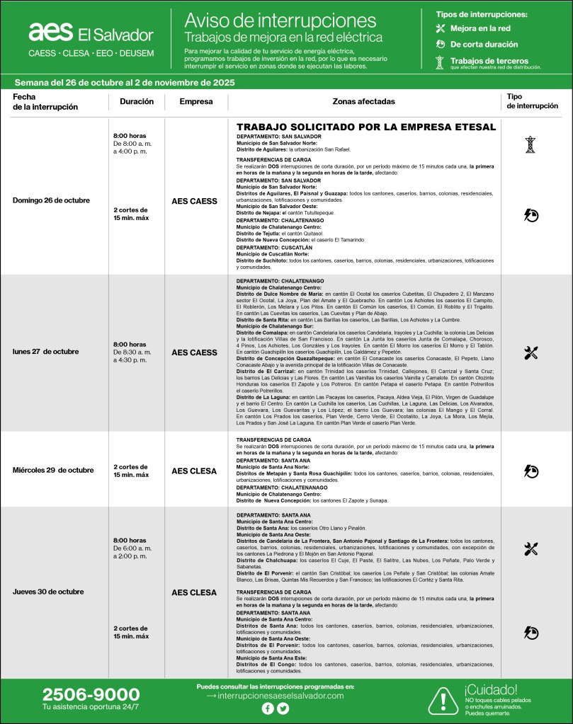 Afectando DEPARTAMENTO: SAN SALVADOR