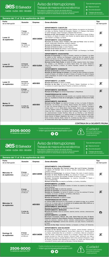 Municipio de El Paraíso: las lotificaciones El Milagro, Los Ángeles; los caseríos El Roble 2, El Triunfo, Los Amates, Los Cortezes y Valle Nuevo.
