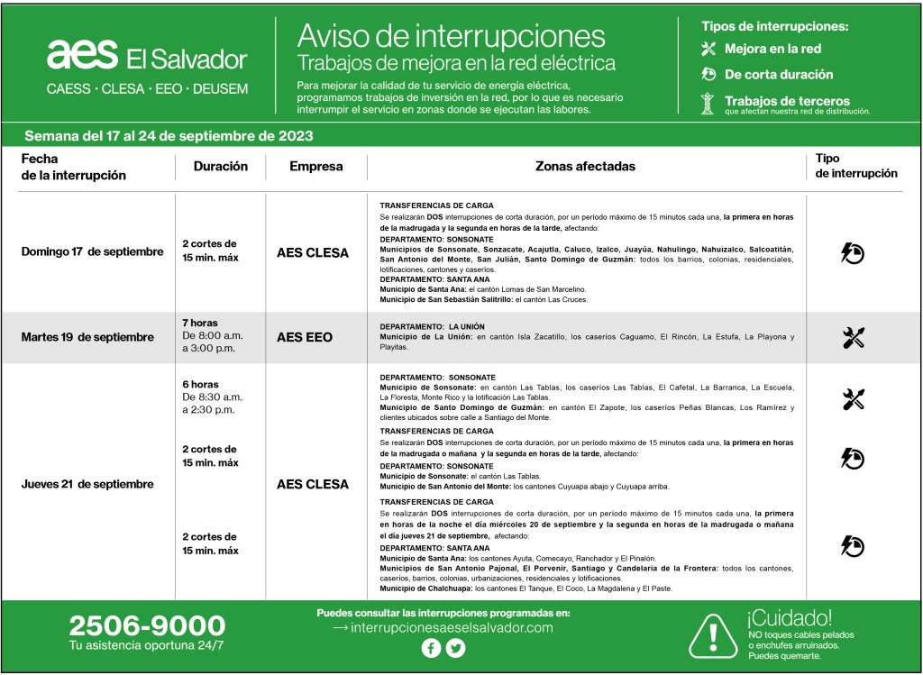 Interrupciones programadas del 17 al 24 de septiembre