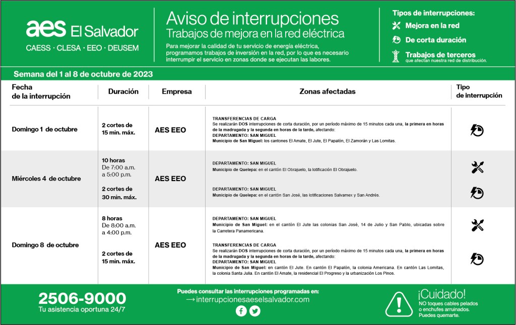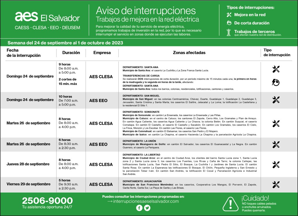 Interrupciones programadas del 24 de septiembre al 1 de octubre