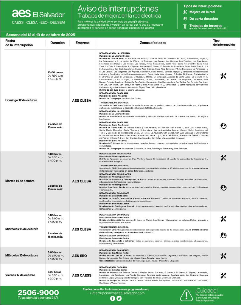 Afectando DEPARTAMENTO DE SAN MIGUEL