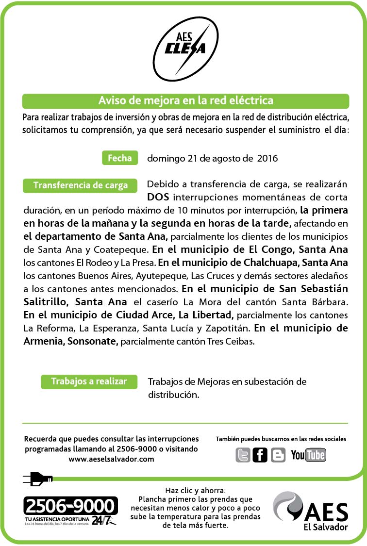 Trabajos de inversión y mantenimiento en la red eléctrica hacen necesario interrupciones programadas del servicio.