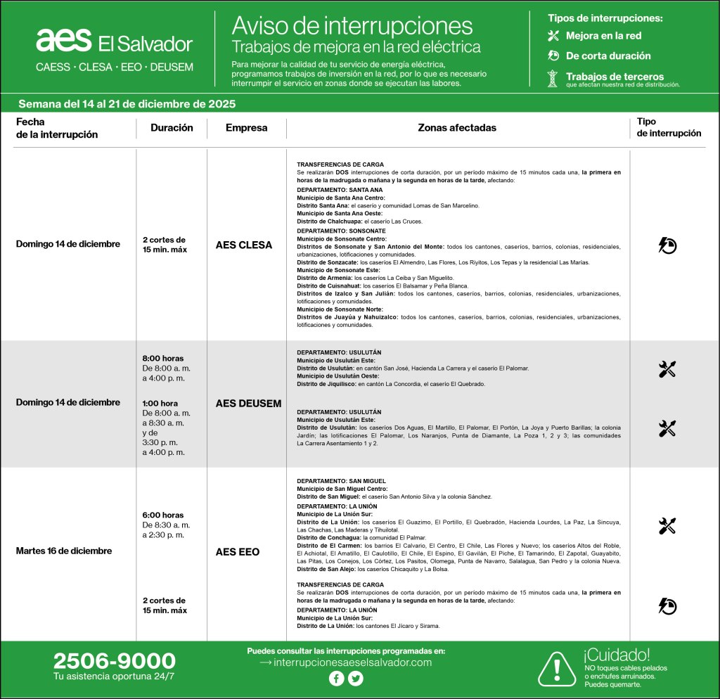 Afectando DEPARTAMENTO: SAN MIGUEL