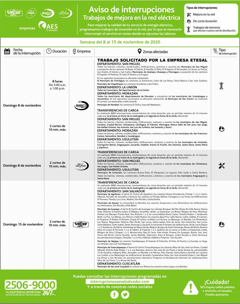 Motivo: Mejoras en la Red de Distribución Eléctrica.