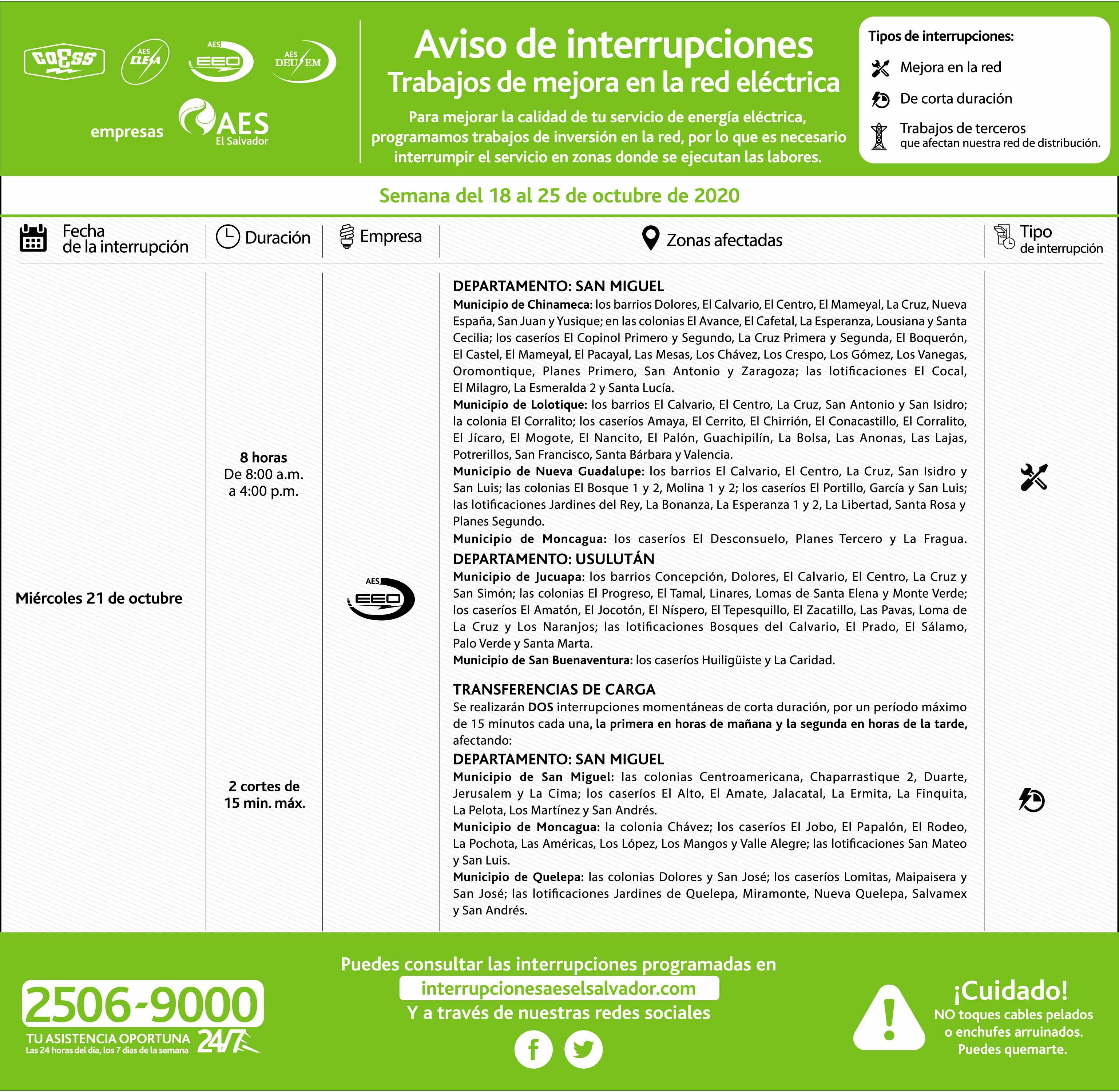 Motivo: Mejoras en la red de distribución.