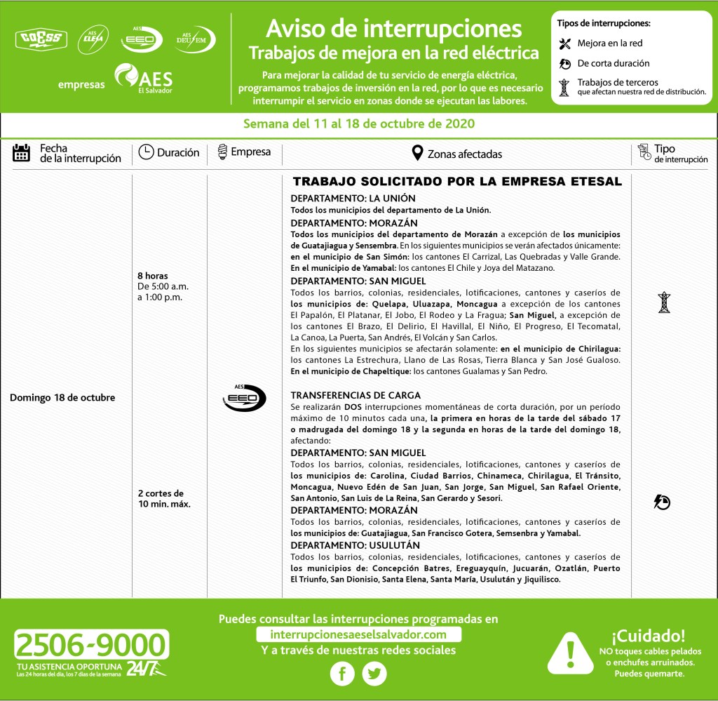 Motivo: Mejoras en la red de distribución eléctrica.