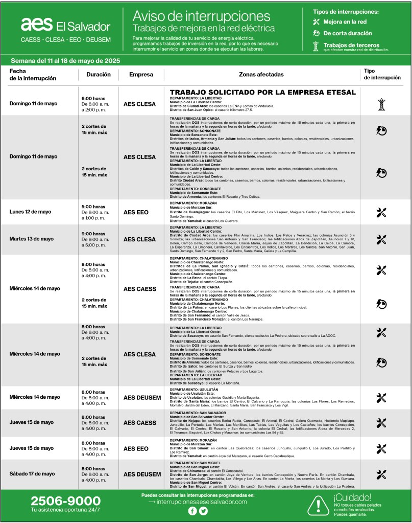 Hora: de 8:00 a. m. a 3:00 p. m.